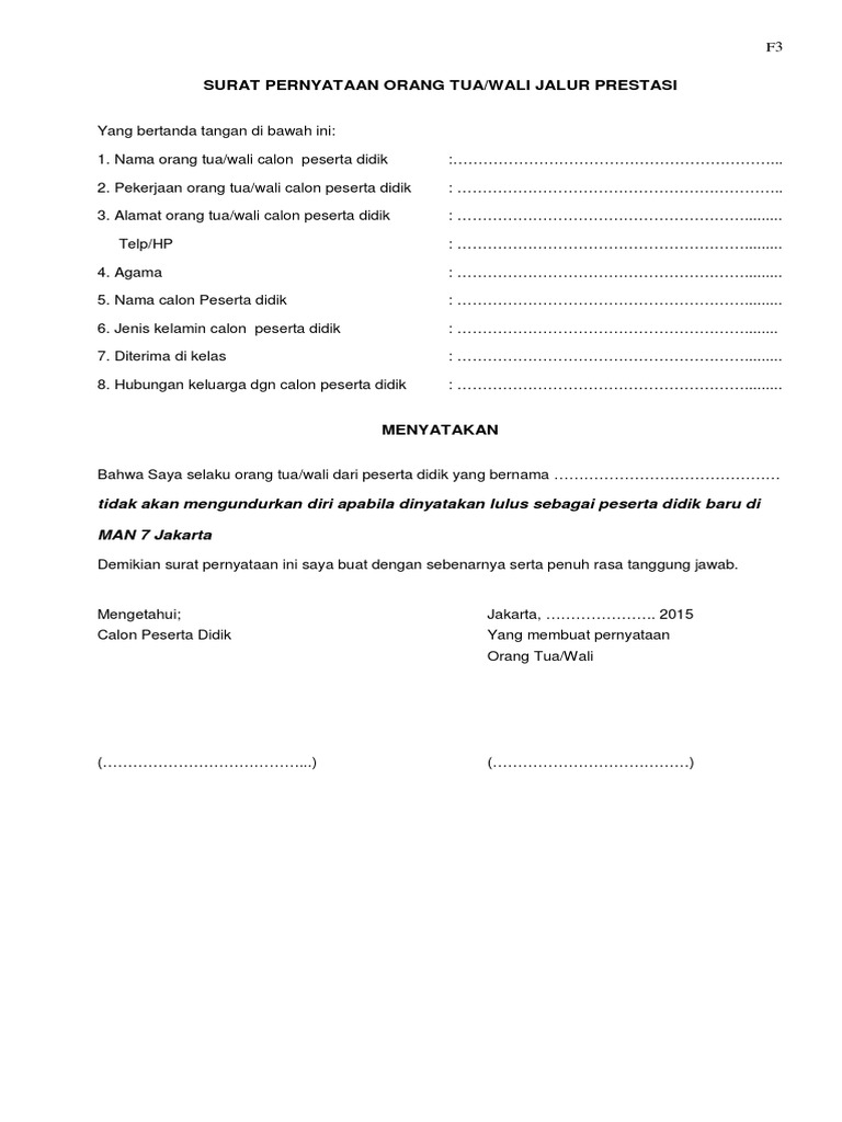 Semoga ulasan dan contoh format yang kami lampirkan diatas dapat bermanfaat untuk keperluan anda semua. Surat pernyataan calon peserta didik baru madrasah aliyah negeri turen yang bertandatangan di bawah ini: Misalkan saja saat anaknya akan mengikuti. Pembuka pembuka surat biasanya berisikan dua baris kalimat utama yakni salam pembuka. Surat izin orang tua merupakan suatu surat tertulis yang digunakan sebagai pernyataan dari orang tua bahwasanya telah menyetujui kegiatan terkait yang dilakukan oleh anaknya. Surat pernyataan orang tua adalah salah satu surat pernyataan yang berisi pernyataan dari orang tua. Identitas diri orang tua (atau orang yang membuat surat pernyataan). Biasanya surat pernyataan ditulis oleh mulai dari contoh surat pernyataan diri sendiri, contoh surat pernyataan dari orang tua, contoh surat pernyataan perjanjian hutang, contoh surat pernyataan. Secara umum surat izin orang tua sama seperti surat pernyataan, yang tujuannya memberikan persetujuan atau penolakan atas kegiatan atau pekerjaan yang akan dilakukan anaknya. Seperti apa contoh surat pernyataan yang benar? 5.15 contoh surat pernyataan orang tua. Pada kesempatan kali ini admin membagikan contoh untuk menjadi refrensi buat bapak/ibu dalam membuat surat izin belajar di era. Surat ini adalah bukti hitam di atas putih bahwa orang tua telah memberikan ijin sepenuhnya kepada anak.